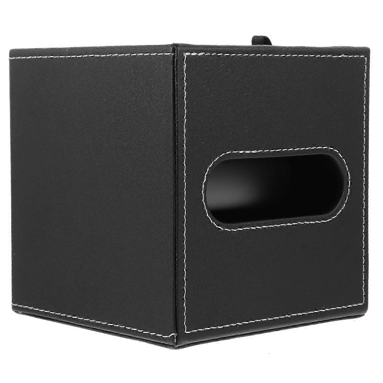 PU Leather Tissue Box Cover - Black Bathroom Countertop Organizer 14x13x13cm