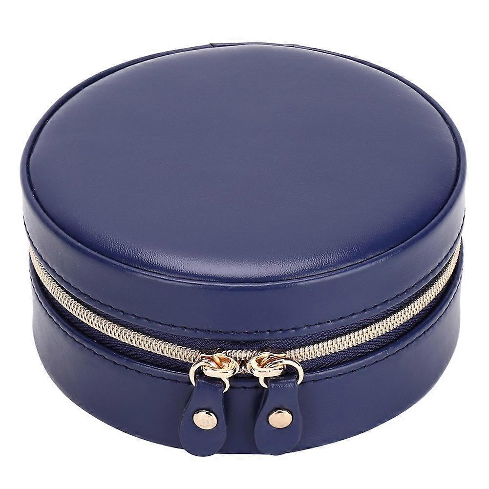 PU Leather Portable Round Earrings Jewelry Storage Holder Organizer Box Case (Navy Blue)