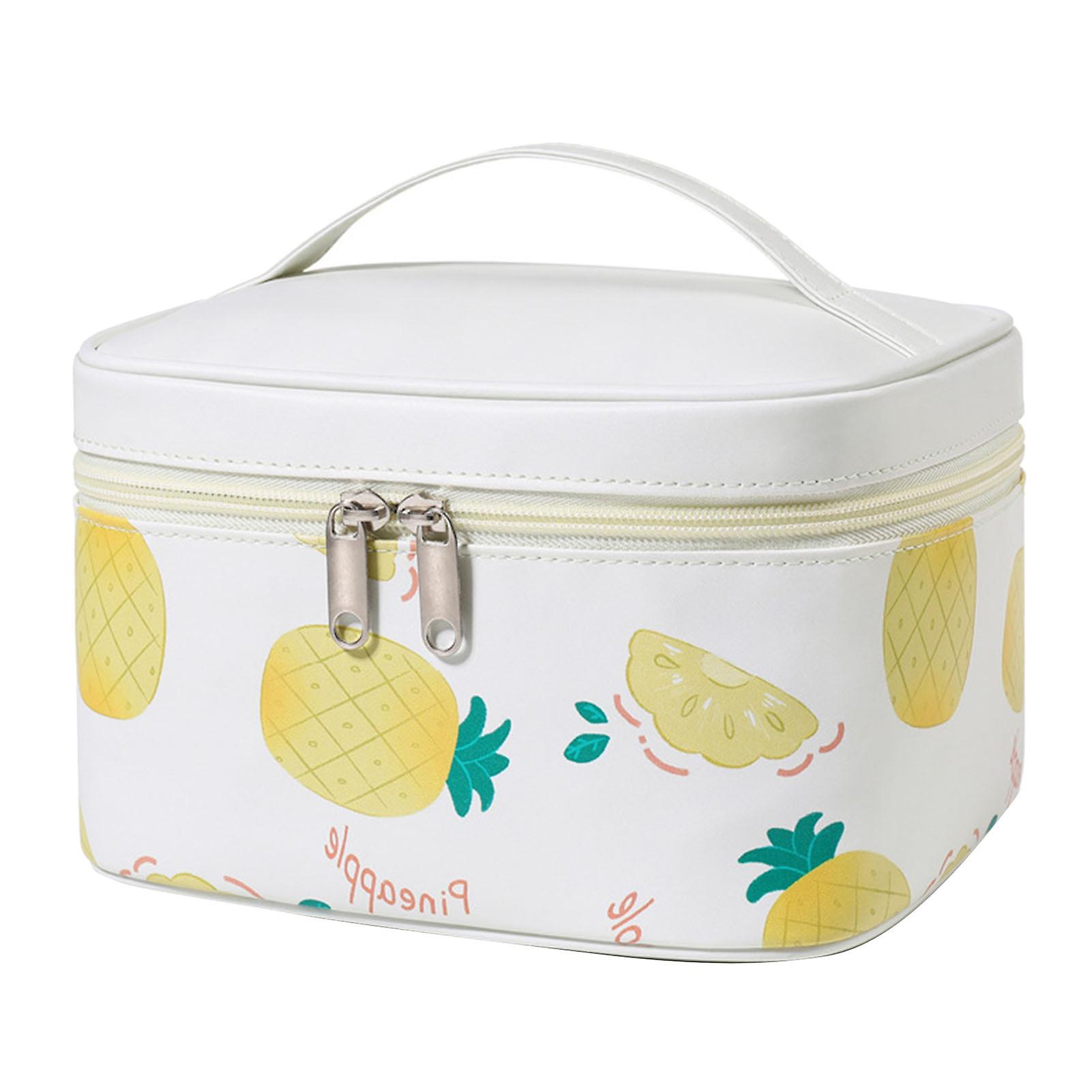 Pu Leather Makeup Bag High Capacity Fruit Pattern Portable Waterproof Toiletry Storage Bag Pouch for Travel Home Beige