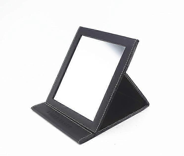 Pu Leather Makeup Mirror Desktop Vanity Mirror Beauty Tools Foldable Mirror,portable Rectangular Make Up Mirror For Travel,camping,home (black 25*18cm