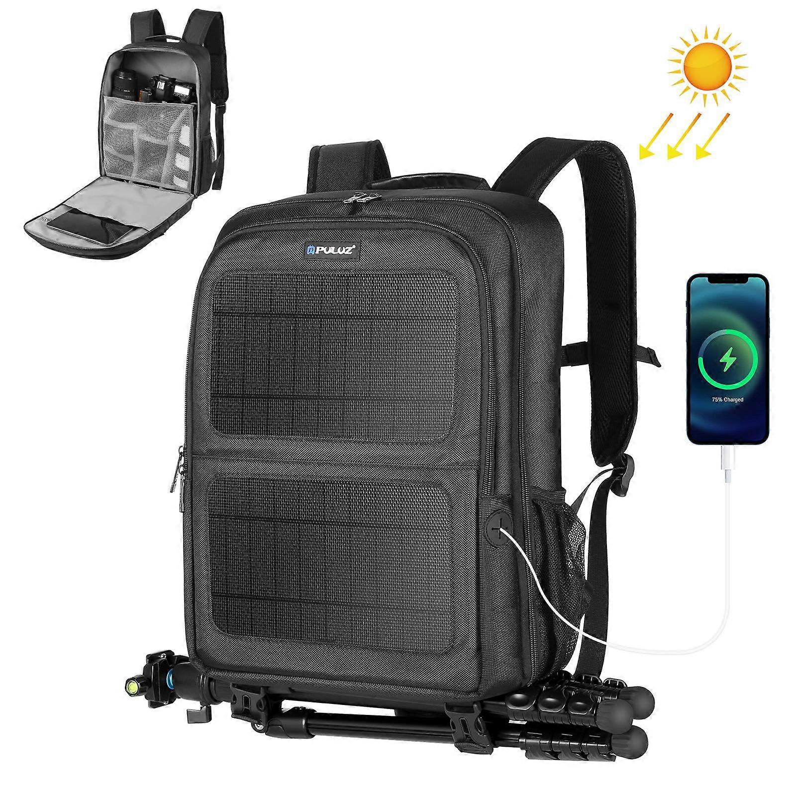PULUZ 12W Solar Power Outdoor Portable Camera Dual Shoulders Backpack Laptop Bag (Black)