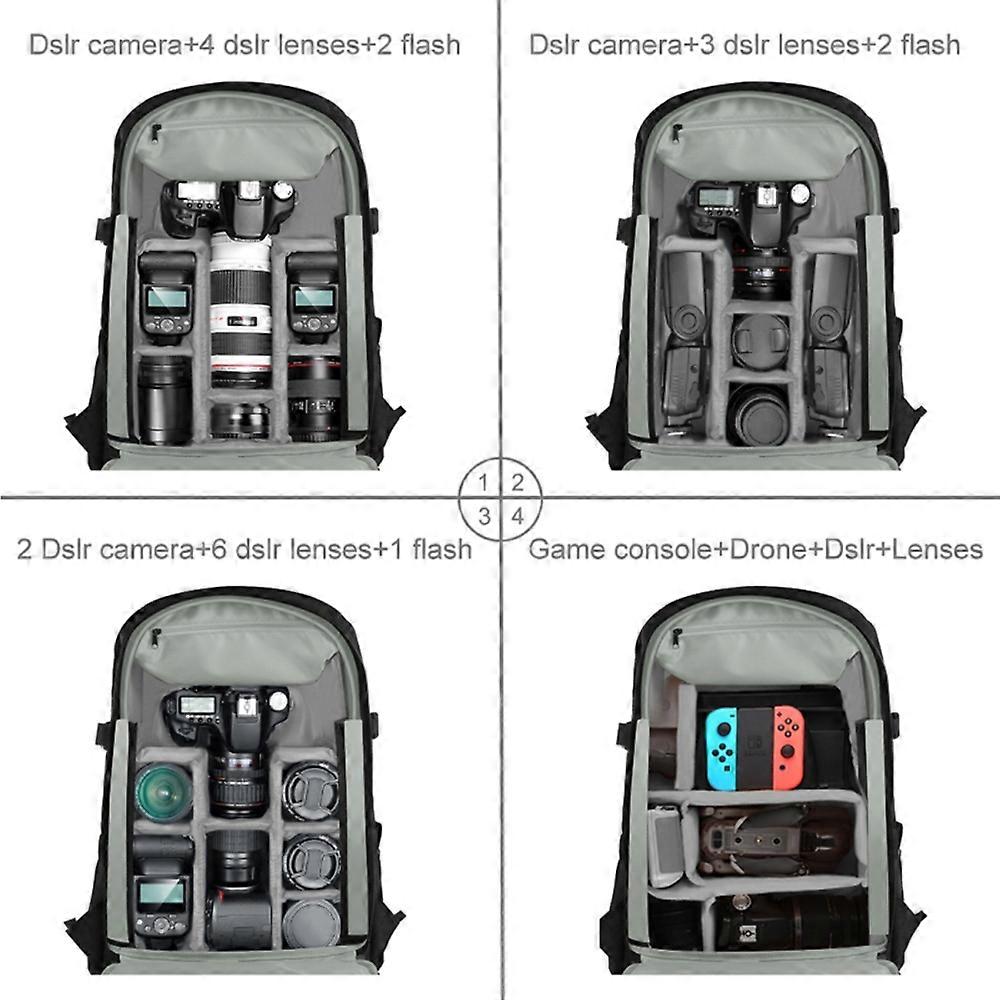 PULUZ PU5015B Camera Backpack Waterproof Camera Bag Large Capacity Camera Case with Laptop Compartment Tripod Holder Rain Cover for Women Men Photographer Features: 【Large Capacity Camera Backpack】The camera backpack has detachable dividers that can be reorganized for placing different items, such as DSLR camera, mirrorless camera, camera lens, flash, stabilizer and so on. Very large capacity, you can carry anything you need for outdoor photography conveniently. 【With Laptop Compartment】Equipped with a laptop compartment at the front cover, the camera bag can hold 15.6inch laptop and other small items. These is also dual elastic side pockets for placing small tripod, water bottle or umbrella. 【Durable and Safe Camera Backpack】The camera backpack is made of polyester material, scratch resistant and tear resistant, with heavily reinforced stitching and zippers, very durable and sturdy. shock-proof padding design gives the best conservation to your camera, lens and laptop. 【Comfortable Camera Backpack】Honeycomb breathable shoulder straps and 3D ventilation cooling back pad design let the camera bag is more comfortable to be worn; front-opening design makes it more convenient and quicker for you to take camera out. 【 Camera Backpack】Simple and design, the camera backpack is suitable for men and women photographers, and perfect for outdoor photography, urban street photography, outdoor portrait photography, etc, you can also use the camera backpack as a normal travel backpack without inner compartments. Specifications: Color: Black Laptop Pocket: for 15.6 inch laptop Backpack Size: 31 * 15 * 45cm/ 12.2 * 5.9 * 17.7in Backpack Weight: 899g/ 2lbs Package List: 1 * Camera Backpack 1 * Rain Cover
