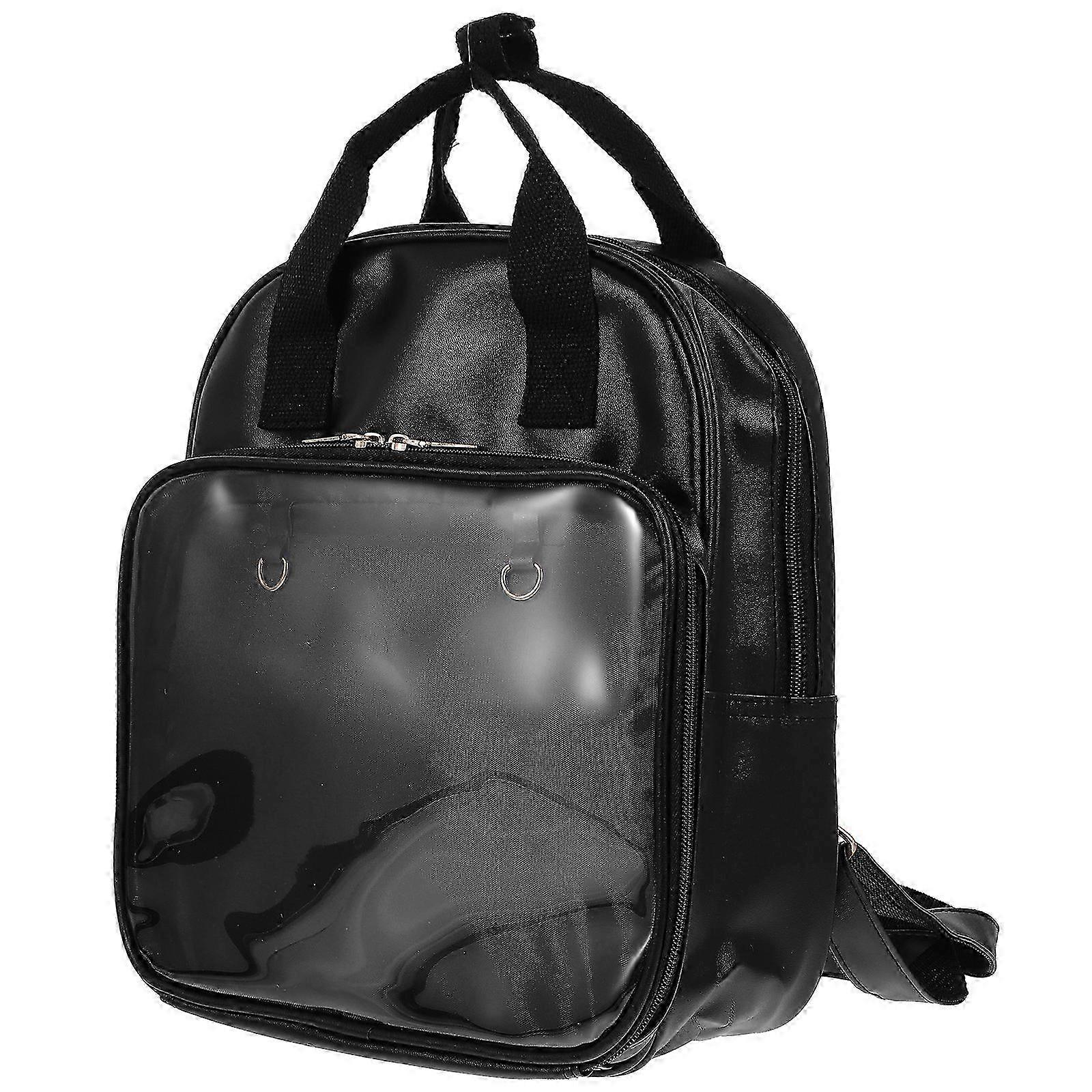 PVC Backpack School Shoulder Bag Candy Color Satchel for Kids Girls Women (Black)