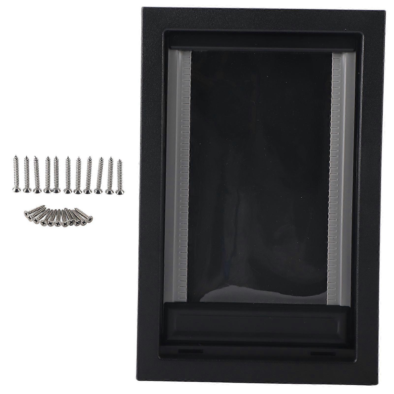 Feature:1. The dog door has no switch, and the dog can enter and exit from both sides. The rear panel of the door is designed with a whole baffle. When you want to prevent the dog from going out, you can plug in the baffle. It flexibly realizes the free in and out of pets and can also easily achieve the purpose of owner control.2. A thicker plate was designed to prevent pets from hitting the board, and a slot was designed at the top of the door frame to trap the baffle and prevent it from escaping from the door frame on impact.3. The magnet resetting plate is designed to enable the door plate to be quickly repositioned after being lifted. Under the influence of the magnet, the door plate can achieve longterm repositioning and block the entry of nonpets through the door.4. The door frame is made of highgrade ABS material. It is a synthetic plastic with high strength, good toughness, good comprehensive performance, high impact strength, chemical stability and good electrical performance. The surface is smooth and very firm.5. The entrance and exit doors are made of PVC material, and the thickened transparent colored film can safely block the entrance and exit doors under the premise of being clearly visible.Specification:Item Type: Pet DoorMaterial: ABS+PVCColor: As Pictures Shown Purpose: Pets come and go at will.Package List:1 x Pet Door22 x Screw1 x English ManualNote:Please check the detailed size on the picture.Please note that the new type and old type of this product will be sent randomly, and make sure you will not mind before ordering.