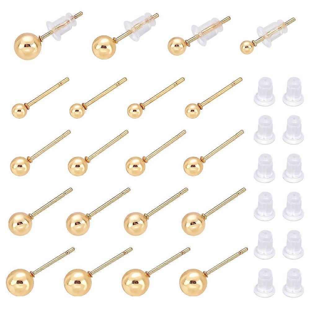 PVD Vacuum Plating 304 Stainless Steel Ball Stud Earrings with Silicone Ear Nuts Golden Ball Stud Earrings: 14~17x3~6mm Pin: 0.7~0.8mm 48pcs/box