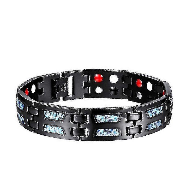 Pxcl Carbon Blue Titanium Magnetic Therapy Bracelet, Double Row Strong Magnet Slim Bracelet, 21.5