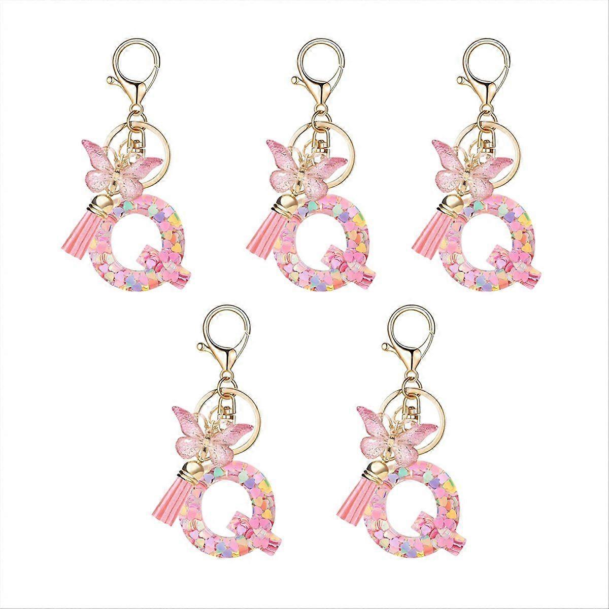 Q style letter pendant pink cute initial keychain butterfly keychain