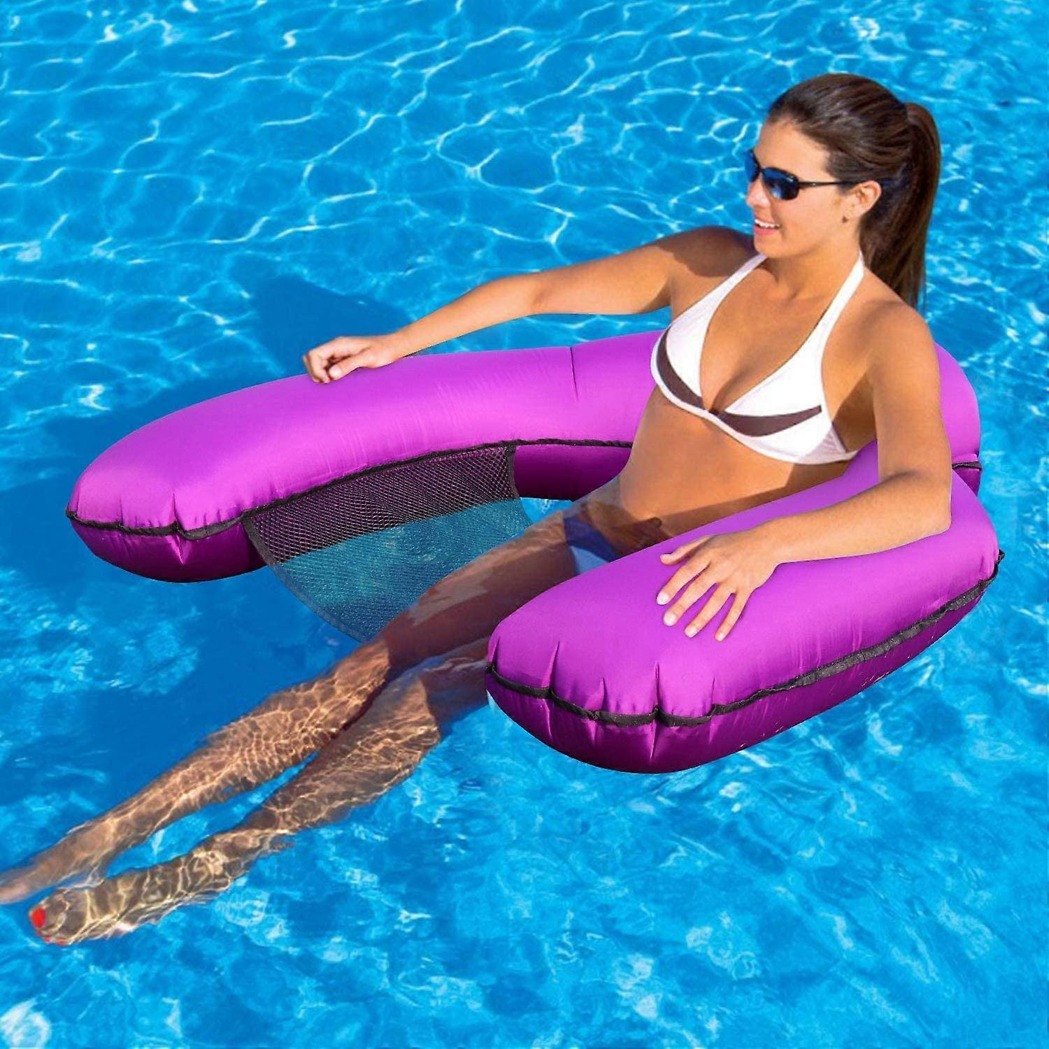 QAQ Swimming Pool Float Hammock Chair for Adults, Inflatable Floating Lounger, Multi-Purpose Portable (Lounge, Hammock, Drifter), No Pump Needed