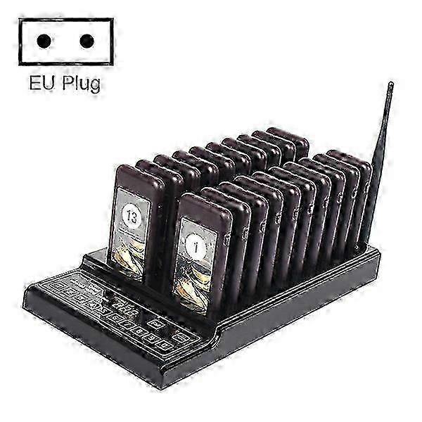 QC100 999 Channel Restaurant Wireless Paging System With 20 Call Coaster Pagers EU Plug