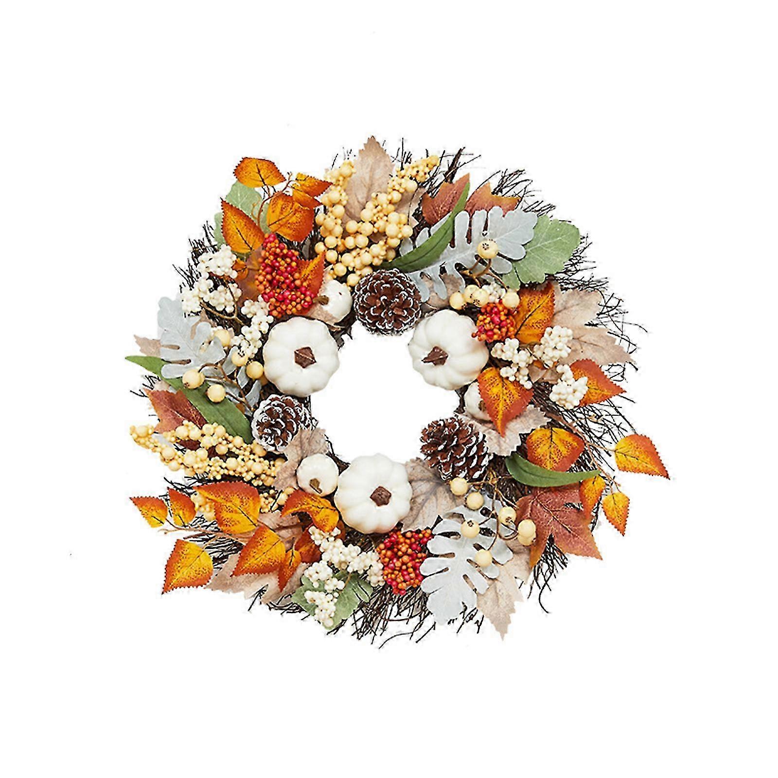 QH433 50cm Maple Leaf and Pumpkin Wreath Door Hanging Halloween 2025