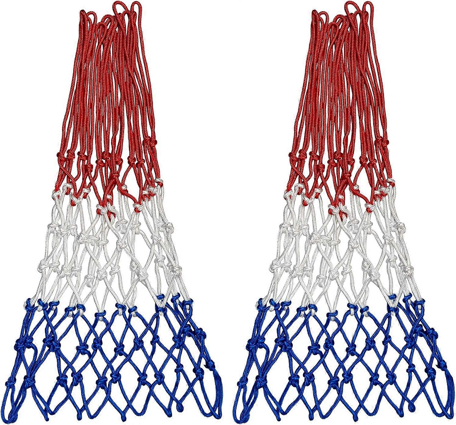 QQDD 2 Pack Heavy Basketball Net Rainproof Sunscreen, Red White Blue Bold Polyester Braided Rope, 12 Loops compatible with Indoor Outdoor Professional