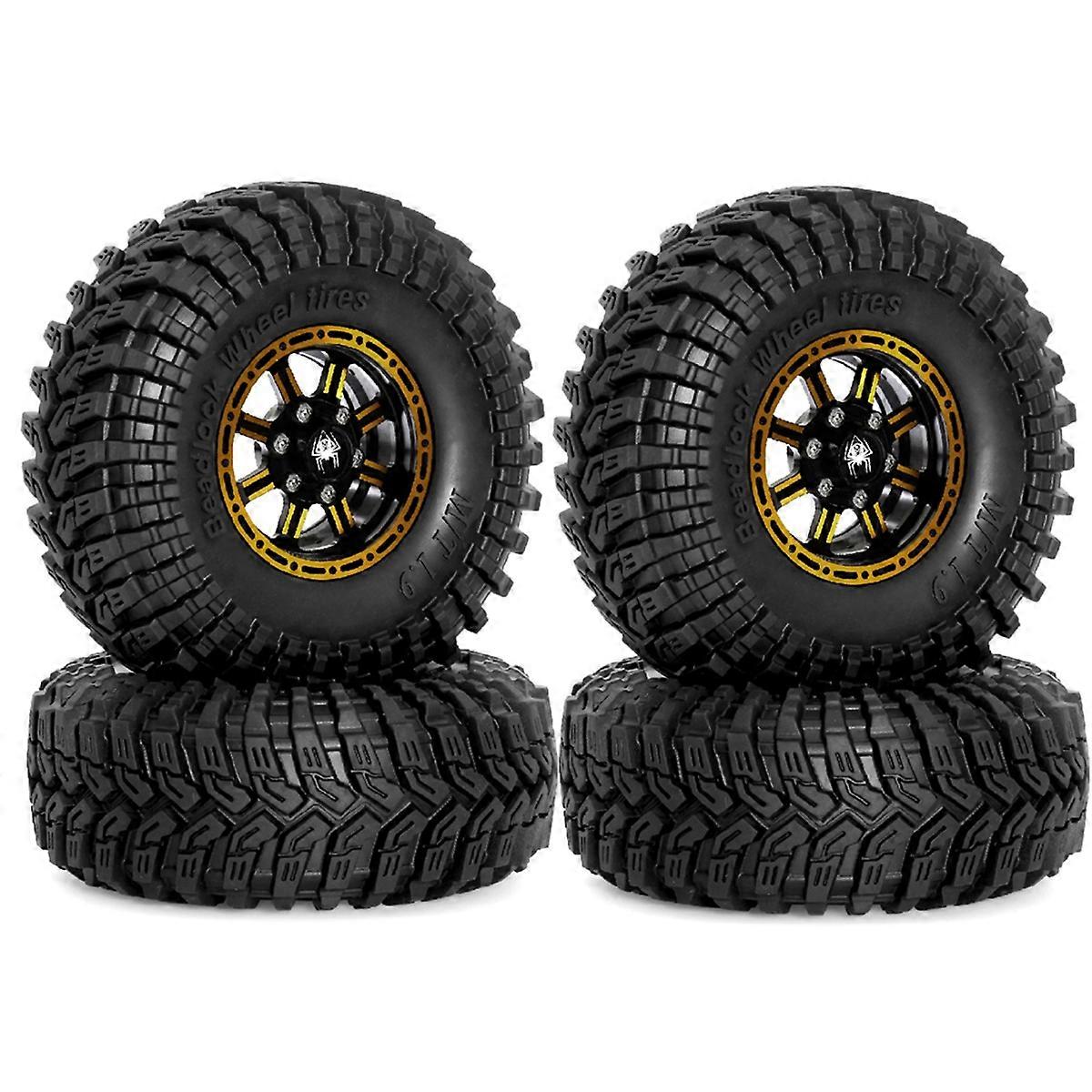 R 4pcs 115mm Metal 1.9inch Beadlock Wheel Rim Tire Set for 1/10 RC Crawler Car Axial SCX10 Wraith RR10 Capra TRX4 A