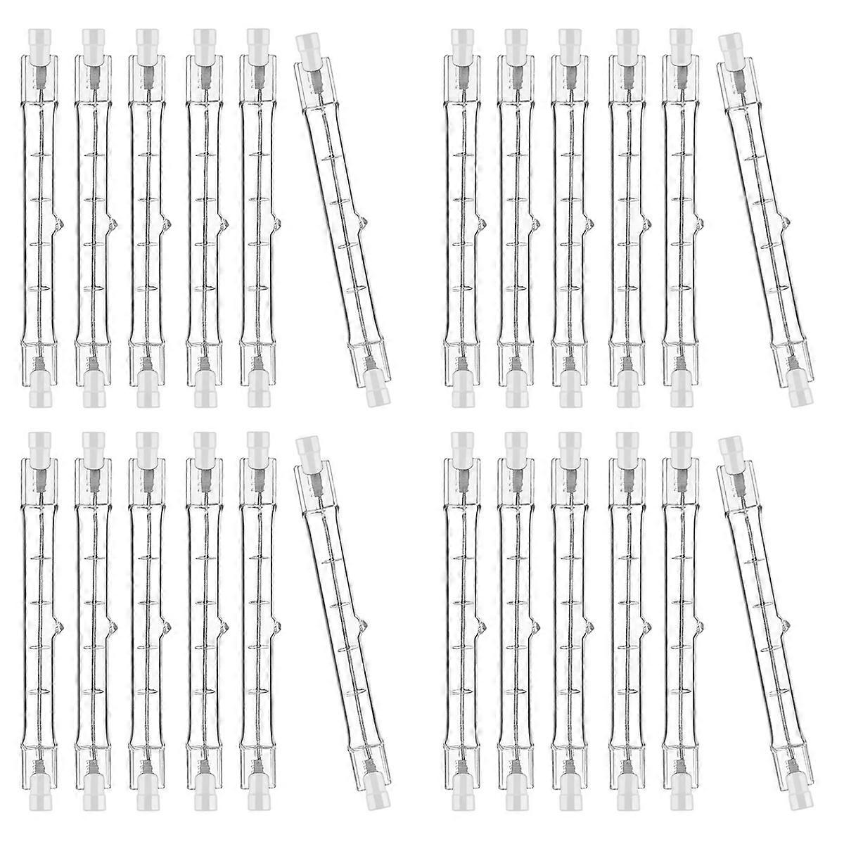 High performance R7S halogen lamps: 200 W, 2000 lumens. Voltage: 230 V. Length: 4.65 inches (118 mm). Direct replacement for all T3 118mm R7S double end fittings. Lasts for an average life of 2500 hours, reduce the frequency of changing R7S halogen bulbs. (Please measure the size of your lamp socket before purchasing, only for 118 mm base, not 78 mm) Excellent performance: high-quality eco-halogen. Wide beam angle of 360°. J type 118 mm double ended halogen bulb 200 watts suitable for R7s base type. This is a clear glass that provides a warm white (yellow) lighting of 2700K with all suitable lights and provides a 99 that allows us to see the colour brilliance of objects under this light. At some point would be hot because of the halogen bulb characteristics. Eye protection dimmable R7S haloline bulbs: R7S J118 dimmable halogen rod 118 mm, which can adjust the light brightness via dimmer. No flickering, protect your eyes and of your family. No dangerous emissions, no UV or IR radiation, light source for environmental protection. Wide application halogen R7s bars: R7S 118 mm T3 halogen lamp for floodlights for home, shop and office, construction spotlight halogen, work and security lighting, exhibition room, stage and studio lighting, floor lamps, landscape lighting, etc. Color: Transparent Color Material: glass Package Contents: 24 x R7S Halogen Light Only the above package content, other products are not included. Note: Light reflection and different displays may cause the color of the item in the picture a little different from the real thing. The measurement allowed error is +/- 1-3cm.