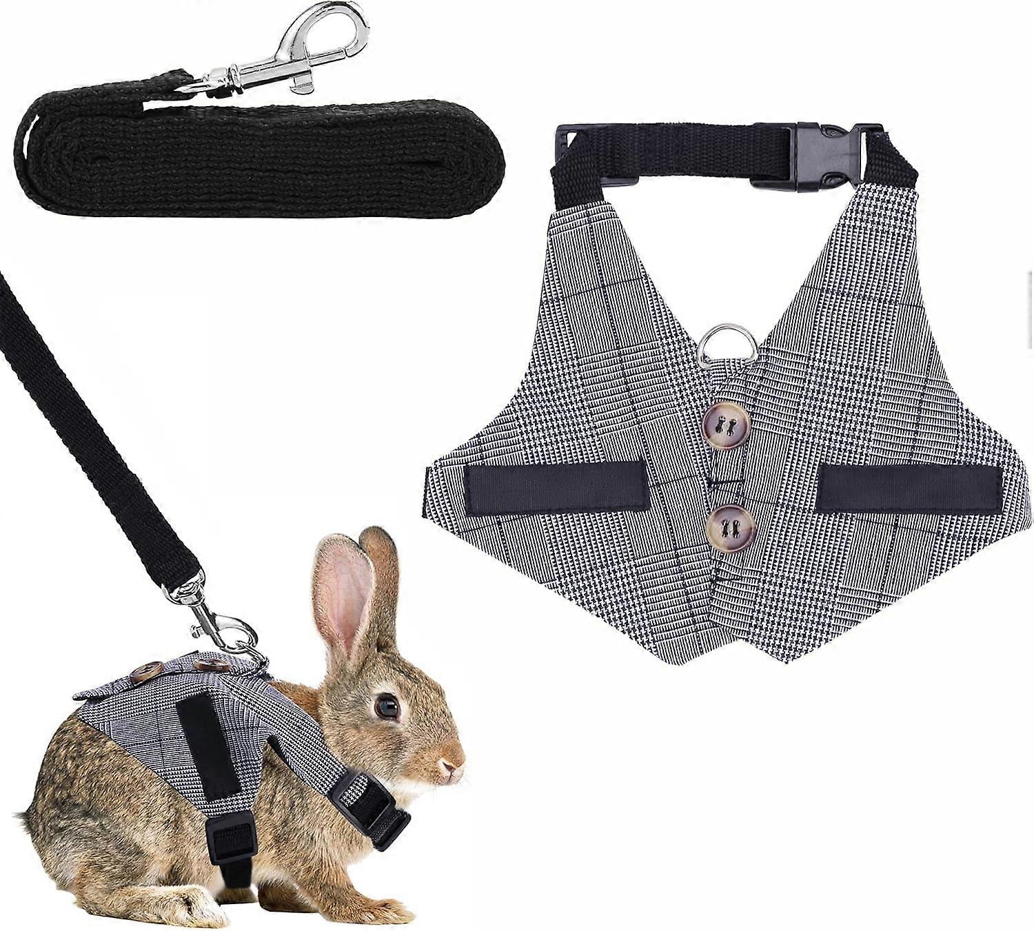 Rabbit Vest Harness and Leash Set, Formal Suit Style, Adjustable Soft Harness with Button Decor, Compatible with Ferret, Bunny, Kitten, Guinea Pig