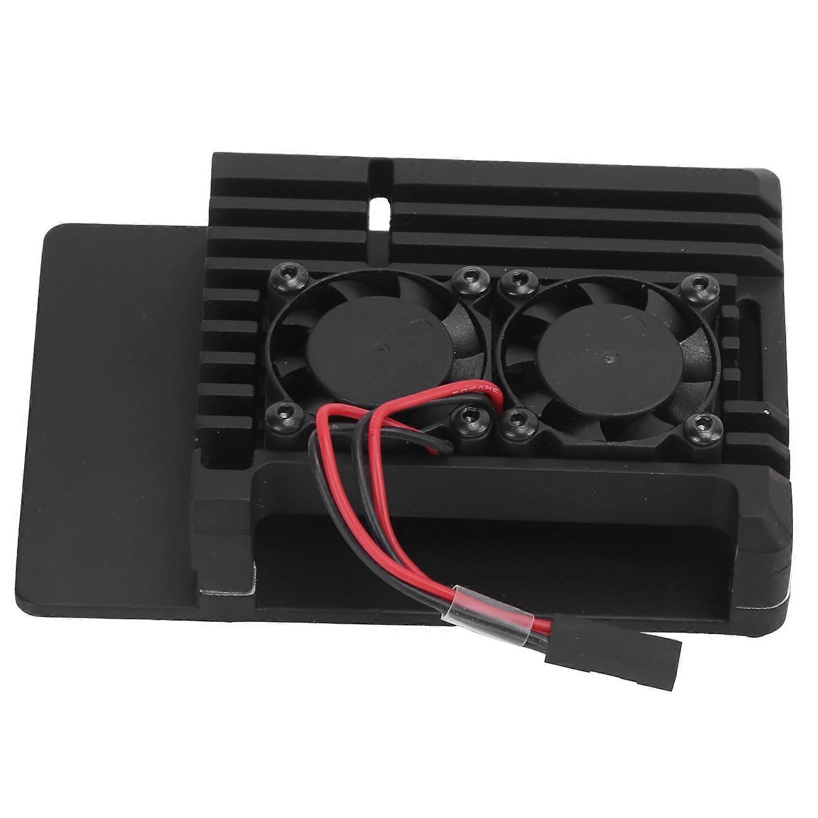 For Raspberry Pi 4B Shell Black Aluminum Alloy Case 85x56.5x20mm with Thermal Tape Dual Fans
