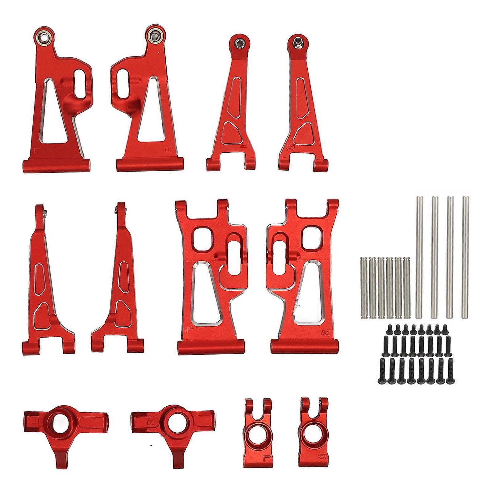 RC Car Suspension Arm Aluminum Alloy Front Rear Suspension Arm Steering Cup Rear Axle Holder Set Upgraded Parts for MJX 14210 14209 1/14 RC Car Red