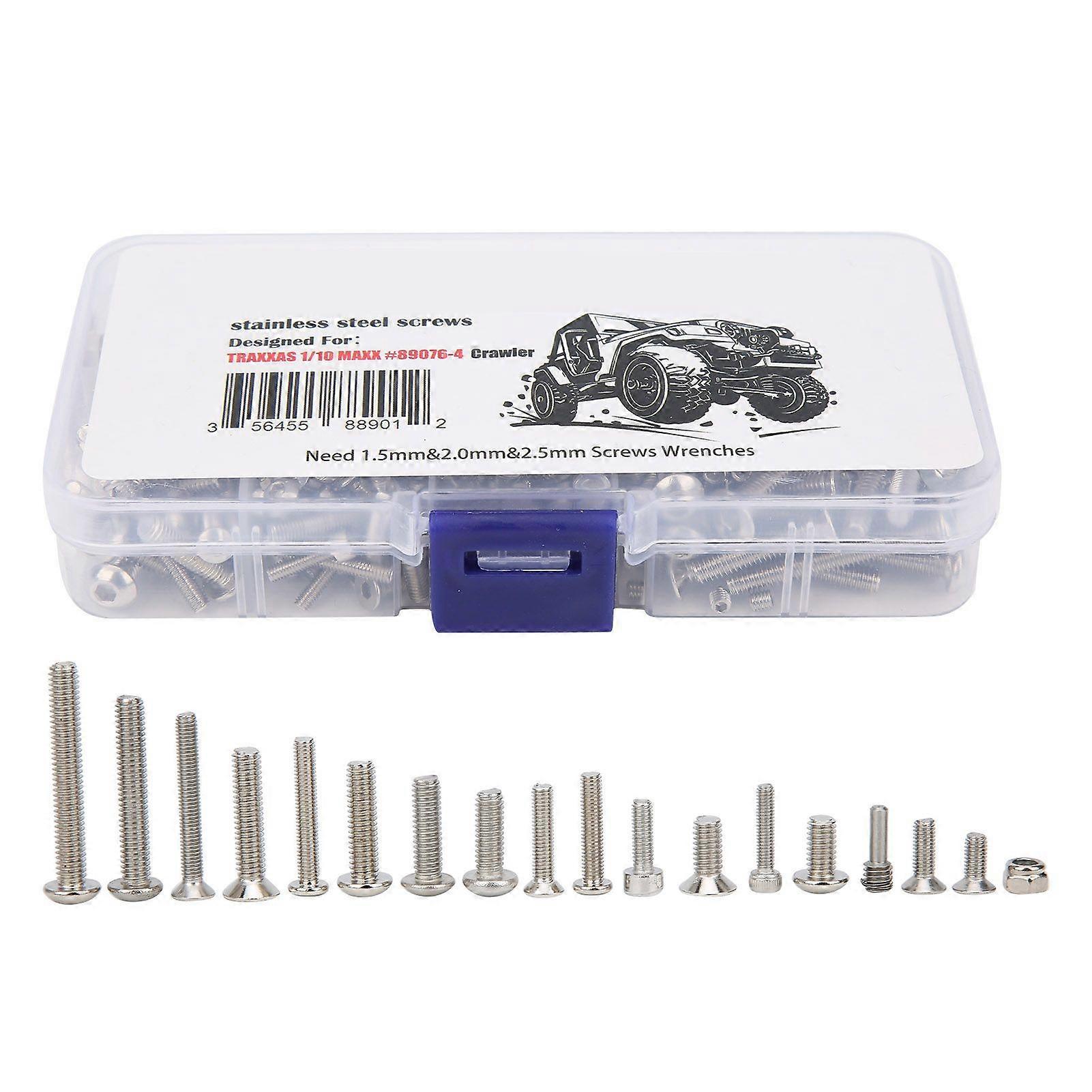 Feature:1. Stainless steel screw fitting set, high hardness, wear resistance, corrosion resistance.2. With storage box, screw accessories can be placed separately, easy to carry and use.3. There are different lengths and types of screws to meet your needs.4. Excellent workmanship, high strength, make sure the reliability of fasteners.5. Remote control car screw fittings, perfectly suitable for Traxxas Maxx 1/10 RC car.Specification:Condition: 100% Brand NewItem Type: RC Car ScrewMaterial: Stainless SteelColor: SilverApplication: For Traxxas Maxx 1/10 RC carIncluding Screws:Round Head Screws:4x8mm / 0.2x0.3in: 10pcs4x14mm / 0.2x0.55in: 10pcs4x16mm / 0.2x0.63in: 10pcs4x20mm / 0.2x0.8in: 10pcs4x25mm / 0.2x1.0in: 10pcs4x30mm / 0.2x1.2in: 10pcs3x5mm / 0.12x0.2in: 10pcs3x15mm / 0.12x0.6in: 10pcs3x18mm / 0.12x0.7in: 10pcs3x20mm / 0.12x0.8in: 10pcs3x26mm / 0.12x1.0in: 10pcs3x30mm / 0.1x1.2in: 10pcs4x12mm / 0.2x0.5in: 35pcsFlat-Head Screws:3x8mm / 0.12x0.3in: 10pcs3x10mm / 0.1x0.4in: 10pcs3x15mm / 0.1x0.6in: 10pcs3x25mm / 0.1x1.0in: 10pcs4x10mm / 0.2x0.4in: 10pcs4x20mm / 0.2x0.8in: 10pcsCap Screws:2.5x10mm / 0.1x0.4in: 10pcs2.5x12mm / 0.1x0.5in: 10pcs3x10mm / 0.12x0.4in: 30pcsBolt Screw:4x12mm / 0.2x0.5in: 5pcsNut:M5: 5pcsM3: 10pcsSet Screws:3x4mm / 0.12x0.2in: 10pcs4x4mm / 0.2x0.2in: 10pcs.Package List:1 Box of RC Car ScrewsNote:1. Please allow 0‑2 cm error due to manual measurement. Thanks for your understanding.2. Monitors are not calibrated same, item color displayed in photos may be showing slightly different from the real object. Please take the real one as standard.