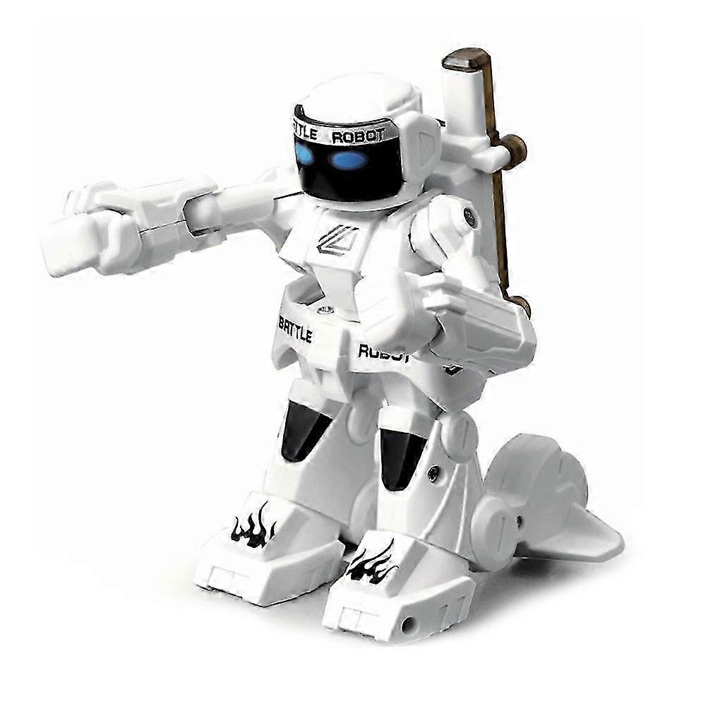Features: Smooth operation and responsive control. Punch left and right, move forward while punching, with lights and sounds. The remote control automatically shuts down after 15 minutes of inactivity, and the robot will shut down after being hit five times. How to Use: 1) Remote control pairing: When the remote control/robot is not properly connected, the indicator light will flash. Once pairing is complete, the indicator light will stay on, and the remote control will make a sound. 2) After successful pairing, hold the remote controls in your left and right hands for operation. Control the robot to move forward, backward, left, and right. 3) In a two-robot battle, if one robot's head is hit, the light on the body of the hit robot will change color, and the corresponding remote control will make a hit sound. Power off to determine the loser. (See instructions for details). 4) The robot automatically shuts down after 15 minutes of inactivity. The robot is equipped with charging protection and low-voltage protection. 5) The red light is on while charging, and the red light turns off when fully charged. Specifications: Size: 6.5*7*9.5cm Function: Music / song, flashing lights Battery capacity: 3.7V/60mAH Power supply mode: USB charging Charging time: 25 minutes Discharge time: 25 minutes Remote control battery: 4*AA battery (not included) Package Included: 1 x Robot 1 x Remote Control 1 x USB Cable 1 x Manual Notes: 1. Manual measurement, please allow 1~3mm error, thank you. 2. Due to the difference between different monitors, the picture may not reflect the actual color of the item. We guarantee the style is the same as shown in the picture.