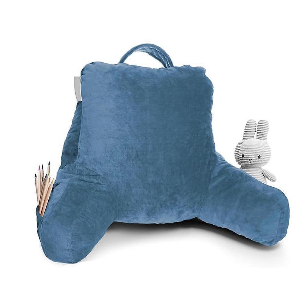 Reading Pillow for Kids, Memory Foam Back Support with Arms & Pockets, Compatible with Bed Use, Blue