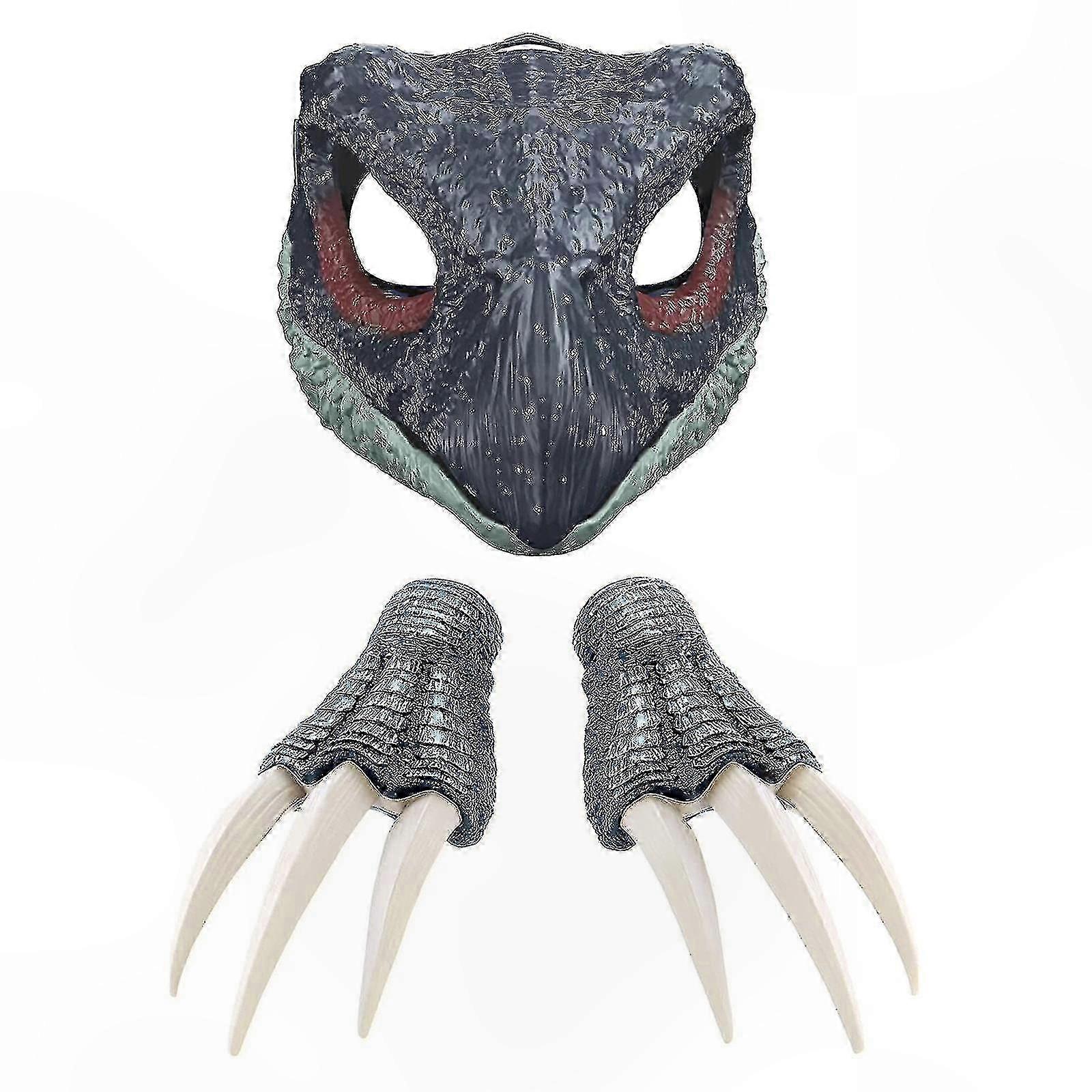 Realistic Dinosaur Mask with Open Jaw and 10-inch Claws for Jurassic Fans