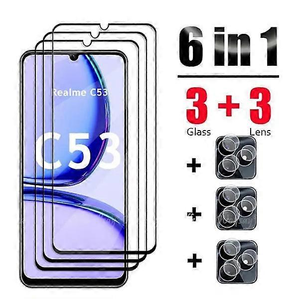 6 in 1 for Realme C53 Tempered Glass Realme C53 Glass Full Coverage Screen Protector Camera Film