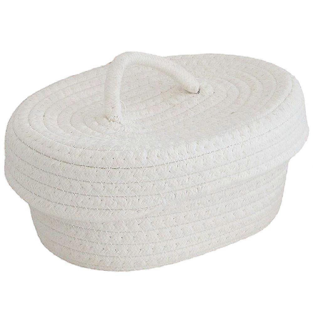 This woven storage basket is made of reliable materials and can be placed on the tabletop. It makes your home and desktop more tidy. The modern design can easily match your existing home decoration. And it can be your good helper. The woven basket with a lid, very multipurpose and practical. Features - Color: White -Material:Cotton woven - Size: 25.00X17.00X10.00cm/9.82X6.68X3.93in - The cotton rope basket with handles is easy to grip and lift, and convenient to move, very practical to use. - With woven texture and simple shape design, delicate and versatile, it can easily match your home style. - A convenient helper for home desktop furnishing, which will create a clean and tidy life for you. - It can hold some small items at the office or school, and store snacks and cosmetics at home. - It can be used to store toilet rolls, aromatherapy, personal care, also be used to store office necessities. Package list: 2 x woven basket