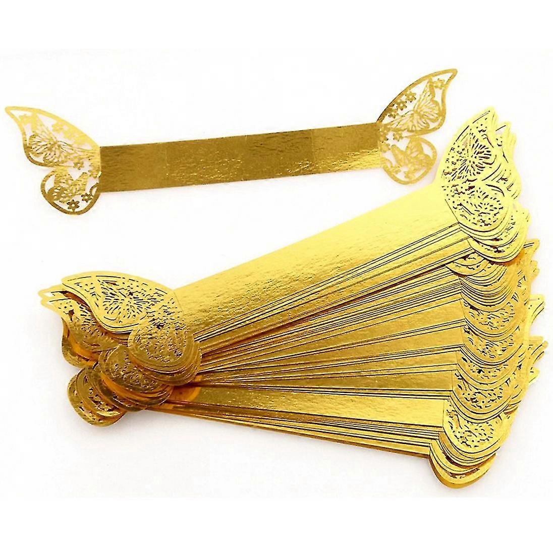 Ree-dimensional Butterfly Towel Buckle Bright Gold Laser Hollow Paper Circle Hotel Napkin Buckle 50 Pieces Of Gold