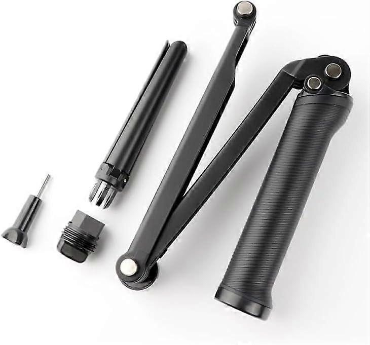 Wide Compatibility : Works with Go Pro Hero 13-5, DJI Osmo Action, and most action cameras. Integrated Foldable Tripod : Built-in tripod unfolds for stable time-lapse, group selfies, or low-angle shots. Extendable Arm : Collapsible extension pole allows for overhead, follow-cam, and close-up footage. Compact and Portable : Foldable design makes it easy to store and carry in any gear bag or backpack. Durable Build : Constructed from aluminum, plastic, and stainless steel for long-term use.