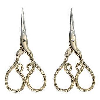 オールドスタイルソーイングハサミ刺繍ハサミ、スネークハサミチタンメッキビンテージハサミ刺繍ハンドハサミミニ小型ハサミ(色:ゴールド)