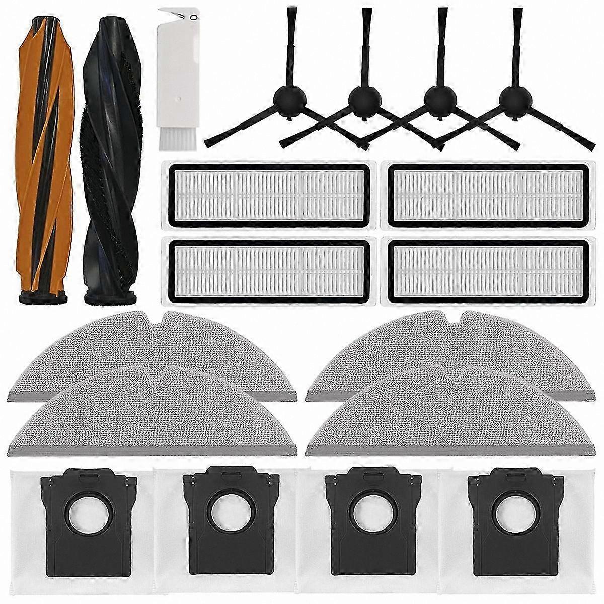 Exclusive Compatibility: Designed specifically for the D20 Plus model, this accessory kit enhances your vacuum's performance. Please verify compatibility with your robot vacuum model before purchase to ensure optimal functionality. Advanced Dual Brush Technology: The dual roller brush features a combination of soft and firm bristles, engineered to clean various floor types including hardwood and carpet, delivering thorough cleaning on all surfaces. Cost-Effective Maintenance: Includes multiple replacement parts to extend the life and efficiency of your vacuum, reducing the need for frequent replacements and offering a practical solution for ongoing maintenance. Enhanced Cleaning Efficiency: Side brushes effectively clean along edges and corners, while HEPA filters trap fine dust and allergens to improve air quality. Dust bags allow for convenient and hygienic waste disposal. Compatible with D20 Plus robot vacuum only. Not compatible with D20 or other models. Color: As shown in picture Material: Plastic Package Contents: 1 pair main brushes 4 side brushes 4 HEPA filters 4 mop cloths 4 dust bags 1 cleaning brush Note: This package includes only the items listed above. Other items are not included. Note: Slight color variations may occur due to lighting and screen display differences. Size measurements may vary by +/- 1-3 cm.