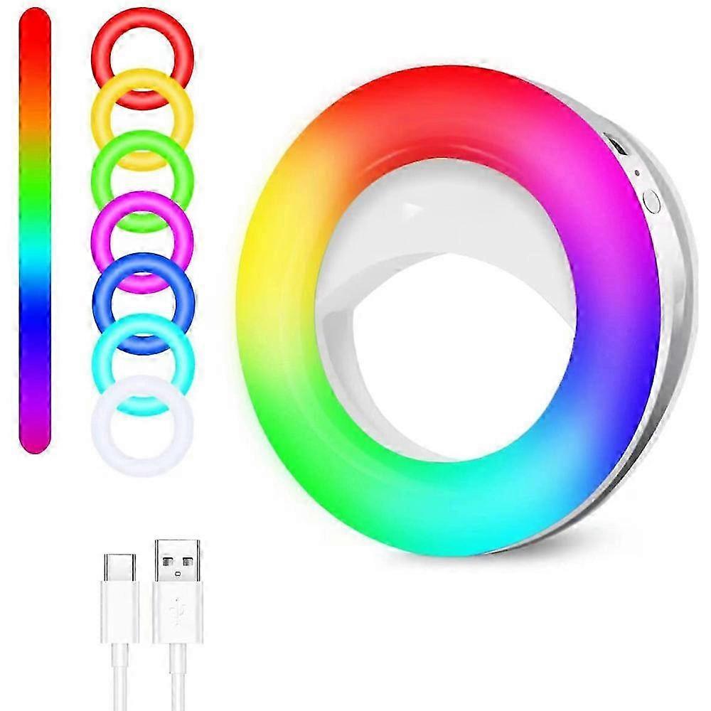 RGB Phone Ring Light, RealPlus Clip-On Ring with 3 Levels of Cool White and 12 RGB Modes, Portable Selfie Ring Light for Phones, Tablets Rechargeable