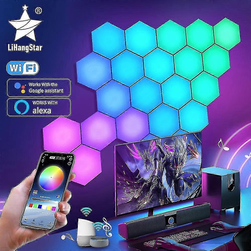 Rgb Bluetooth Led Hexagon Light Indoor Wall Light App Remote Control Night Light Computer Game Room Bedroom Bedside Decoration