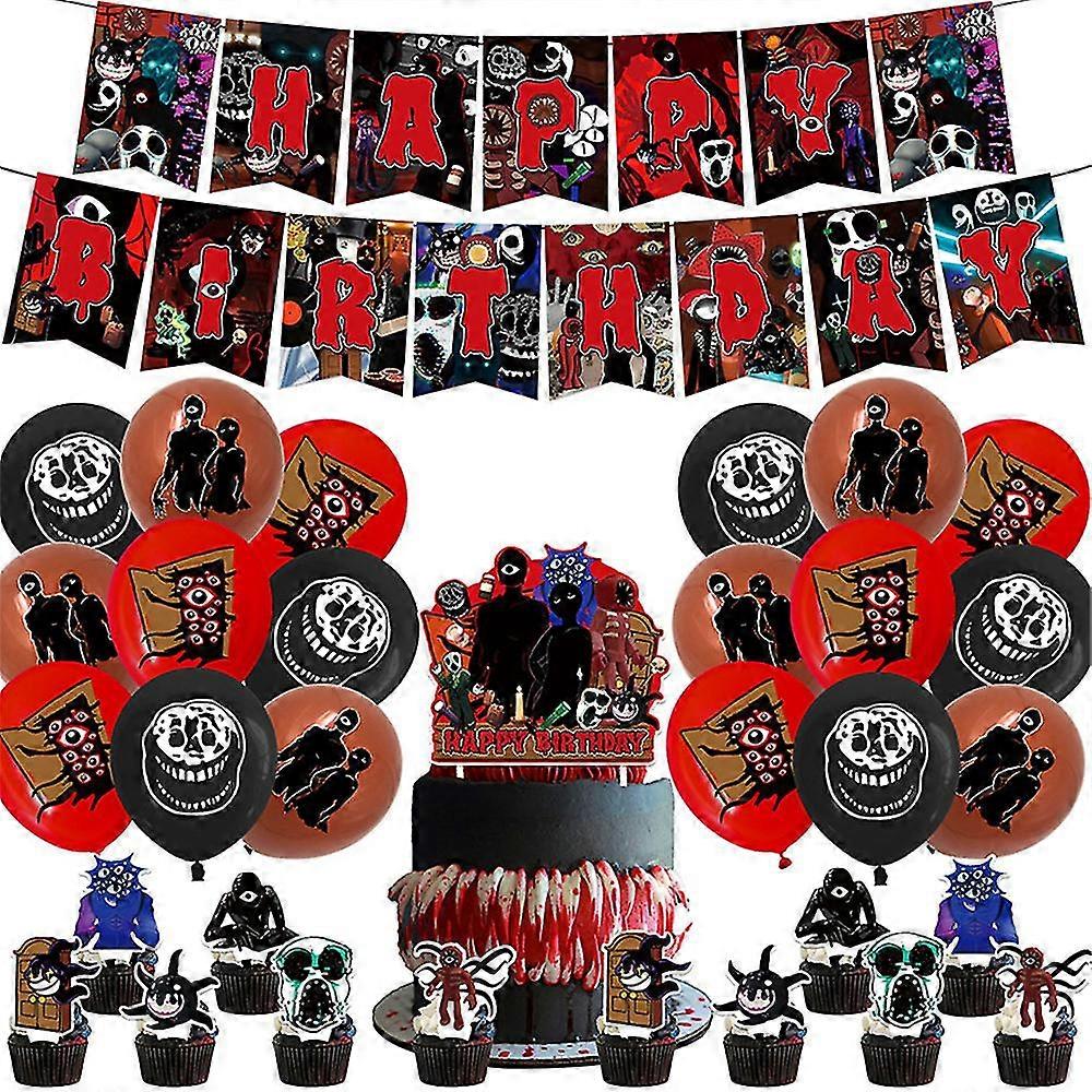 Roblox Door Birthday Party Decoration, Horror Game Party Supplies Set For Kids Include Happy Birthday Banner, Cake/cupcake Toppers, Balloons
