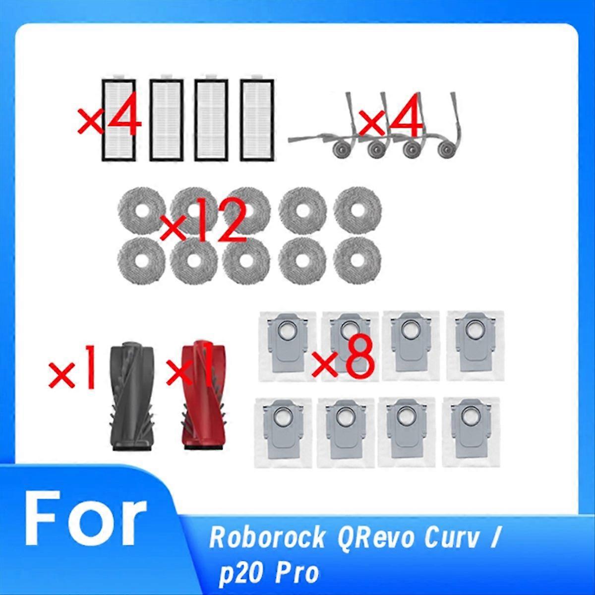 Comprehensive Compatibility: Designed specifically For Roborock QRevo Curv / P20 Pro, this kit ensures a perfect fit and function for your robotic vacuum. Complete Package Contents: This kit includes 4*Side brush 4*Filter 8*Dust bag 12*rag, 1 set * main brush,providing a full range of maintenance supplies. Maintenance Recommendations: To maintain optimal , it's advised to clean the regularly and replace every 1-2 months, depending on usage frequency. This routine ensures your vacuum operates at peak efficiency. Premium Construction: Made with high-grade materials, this part not only promises longevity but also guarantees robust performance under various operating conditions. It's an essential upgrade for anyone looking to maintain their appliance in top condition. Simple Installation Process: designed for hassle-free installation without the need for additional tools. The user-friendly design allows for quick and easy replacement, making maintenance a breeze and saving you time. Model: For Roborock QRevo Curv / P20 Pro Function: Cleaning Colour:As Shown Material:plastic Package Contents: 4 * Side brush 4 * Filter 8 * Dust bag 12 * rag 1 set * main brush Only the above package content, other products are not included. Note: Light reflection and different displays may cause the color of the item in the picture a little different from the real thing. The measurement allowed error is +/- 1-3cm.
