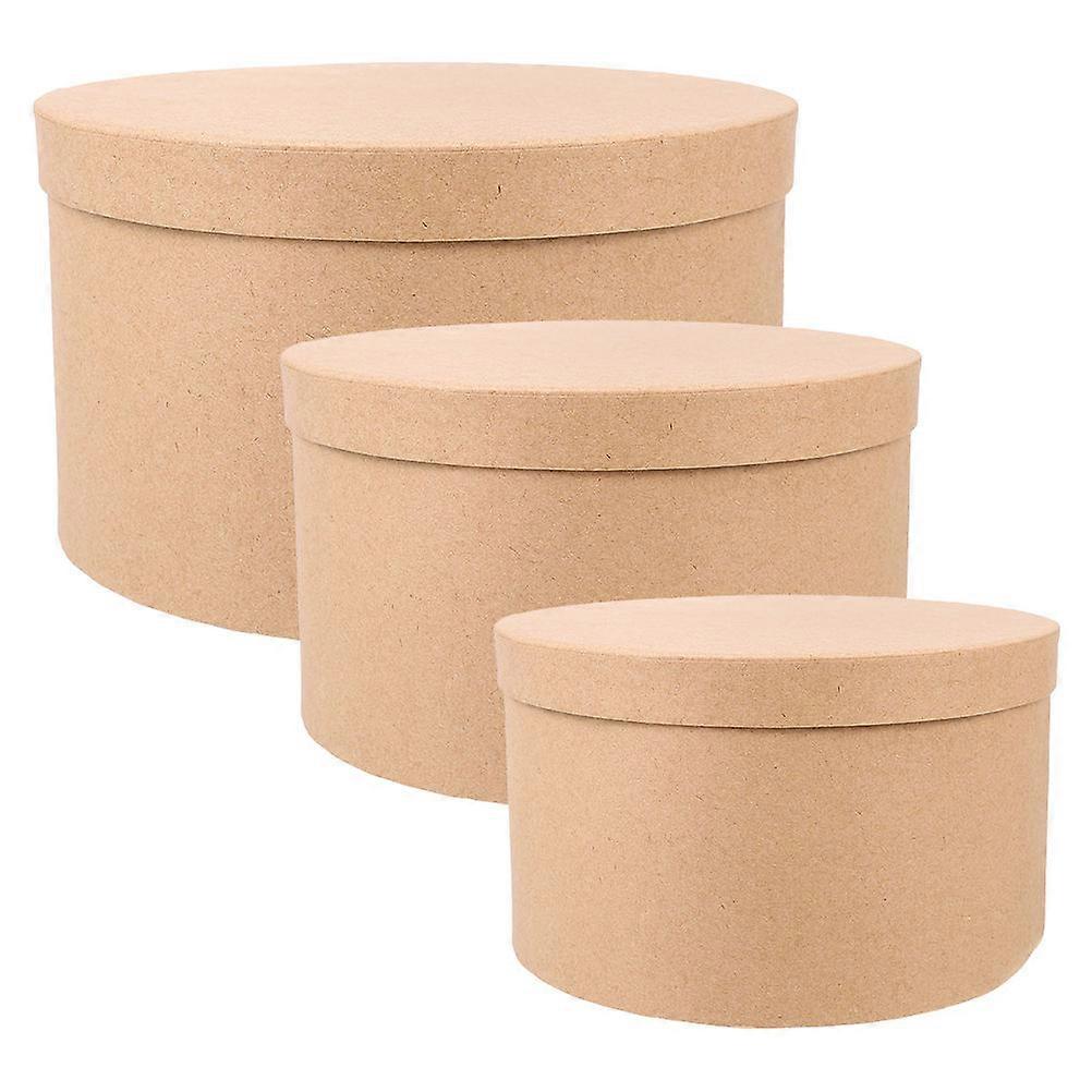 Round Hat Storage Box Kraft Paper Present Box Display For Crafting Enthusiasts 3Pack