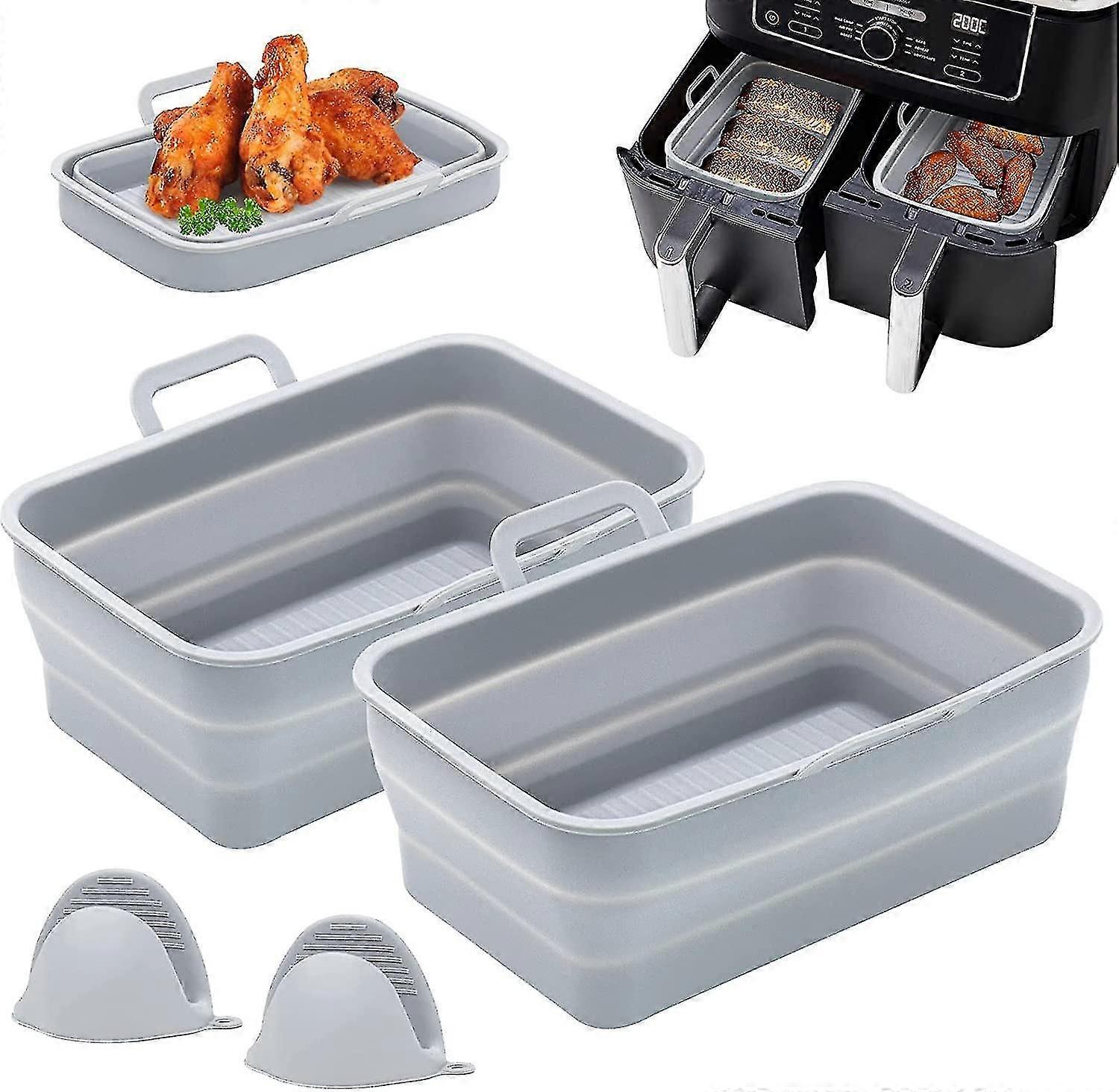 2pcs Silicone Pot For S Dual Air Fryer, Collapsible Silicone Air Fryer Liners, Foldable Double Air Fryer Air Fryer Basket, Anti-scalding Clip For High