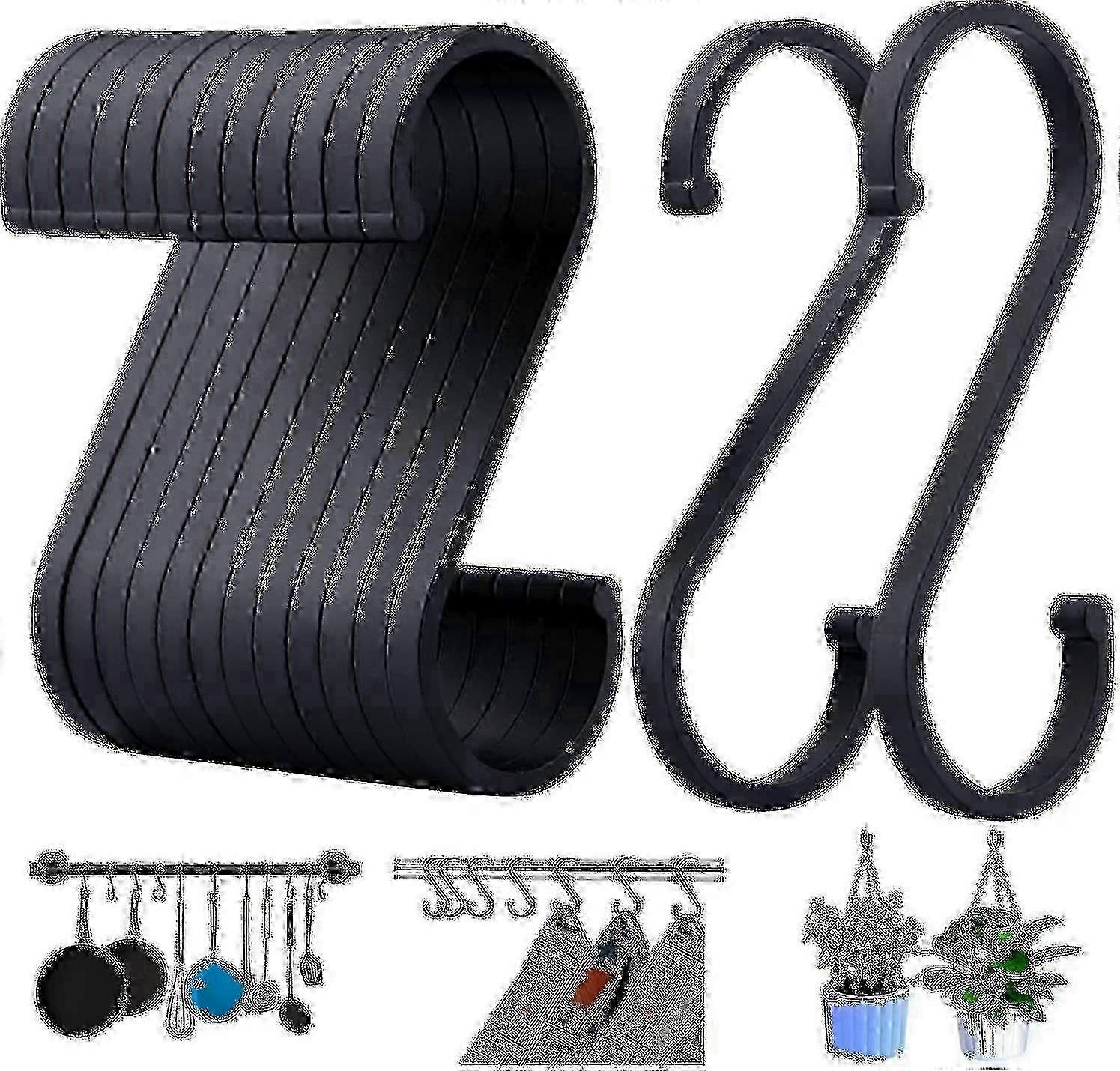 PRACTICAL AND EFFICIENT ORGANIZERThese s hooks provide a practical organizational solution for your kitchen just by hanging your pots, pans, spatulas, cups and other kitchen utensils on your pot rack, wall rails or shelves, make your cooking more efficient and easy. And tidy up your closet by hanging cloths, jeans, scarves, hats, belts, jewelry and more. Also organize tools in the garage, hang toiletries, towels and robes in the bathroom and hang plants in your garden. HIGH QUALITY S HOOKSMade of 6063 SPACE ALUMINUM which is same as the iPhone back cover, makes it sturdy and light weight. And is anodized ensures s hook never rust and is durable. Hanging weight up to 25kg, you can comfortably use s hooks for hanging your heavy pots and pans. Hook size :8.67cm H x 3.38cm W suitable for most poles, racks and shelves. STYLISH & SIMPLE STYLEClassic MATTE BLACK used from eco-friendly coating, can pass 48 hours of salt spray test. No rust, no fade, stain proof, effectively solves fingerprints and accumulation of dust and oil. Elegant, modern style adds great beauty and reduces annoying clutter. SAFE & STABLE HANGINGSleek edge with smooth curves without worrying about scratching your hands or items. Round design on each end ensures hanging items securely without falling. 5mm thick hooks for heavy duty hanging. EASY TO INSTALL These S shaped hooks are simple and friendly design, it doesnt need to drill on your beautiful house and wall, you can hang them on racks, bars, shelves and so on, without need of nails, screws, or adhesives.Our products are made with the highest quality materials and are designed to provide you with the best possible user experience. We strive to ship out all orders within three days of purchase, and the estimated delivery time is 8-15 days.When shopping, please pay attention to the size and dimensions of the product to ensure that it meets your needs. In the title and , we have provided detailed information about the product, including its features and specificationsWe want you to be completely satisfied with your purchase, so if you have any questions or concerns, please don't hesitate to contact us. We are here to help and will do our best to assist you.Thank you for choosing our product. We hope you enjoy it<br>
