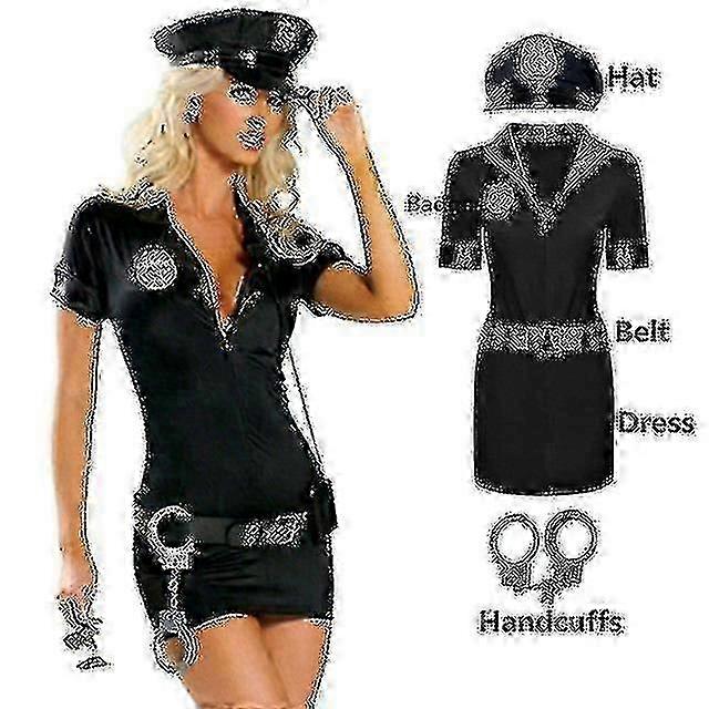 S-xxxl Black Cop Officer Outfit Policewoman Costume Suit Uniform For Adult Women Halloween Police Fancy Dress SHJ