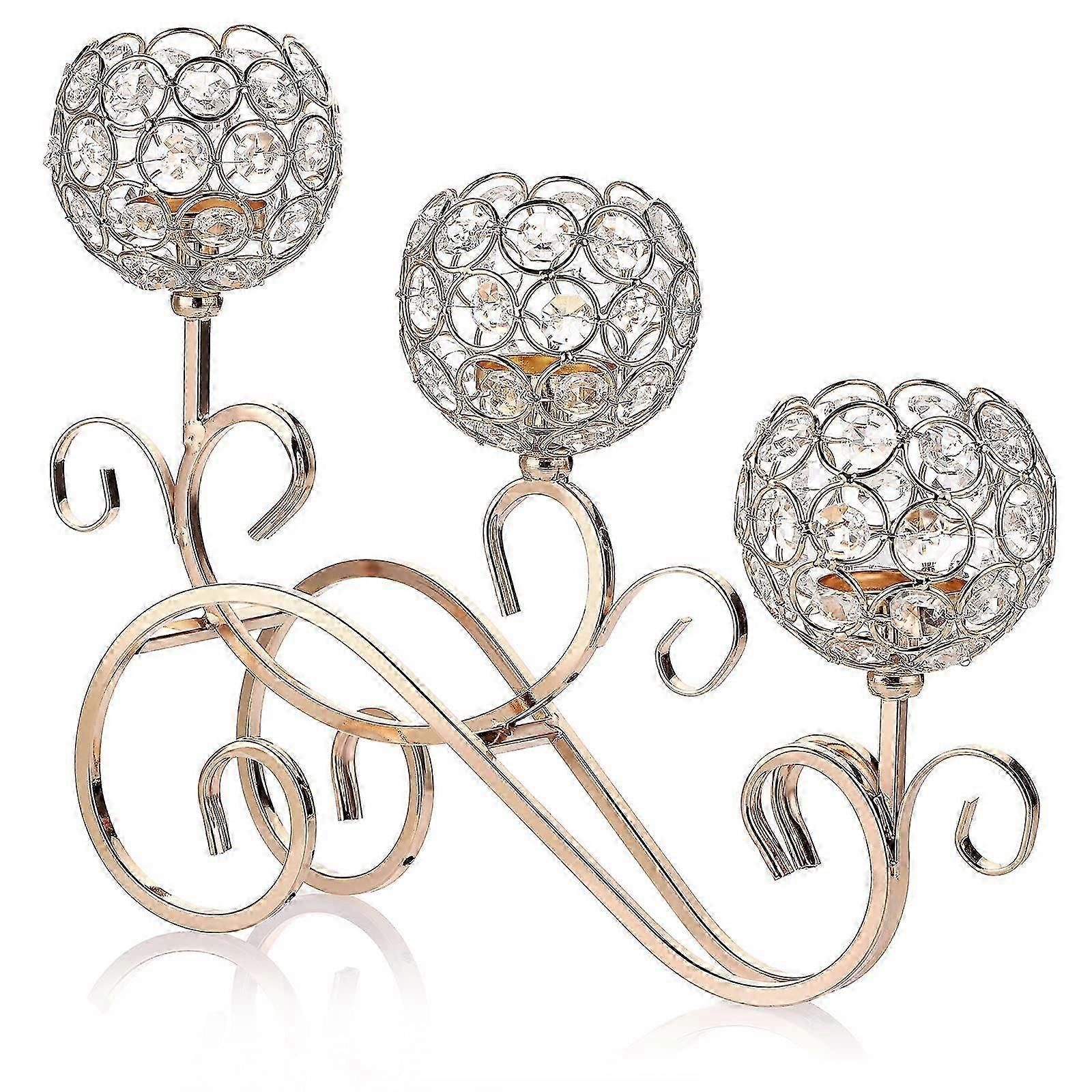 Golden S-Shape Crystal Candlestick 3-Arm Crystal Bowls Made of Glass Metal Candle Holder Tealight Decorative Candelabra Candle Holder for Christmas Ha