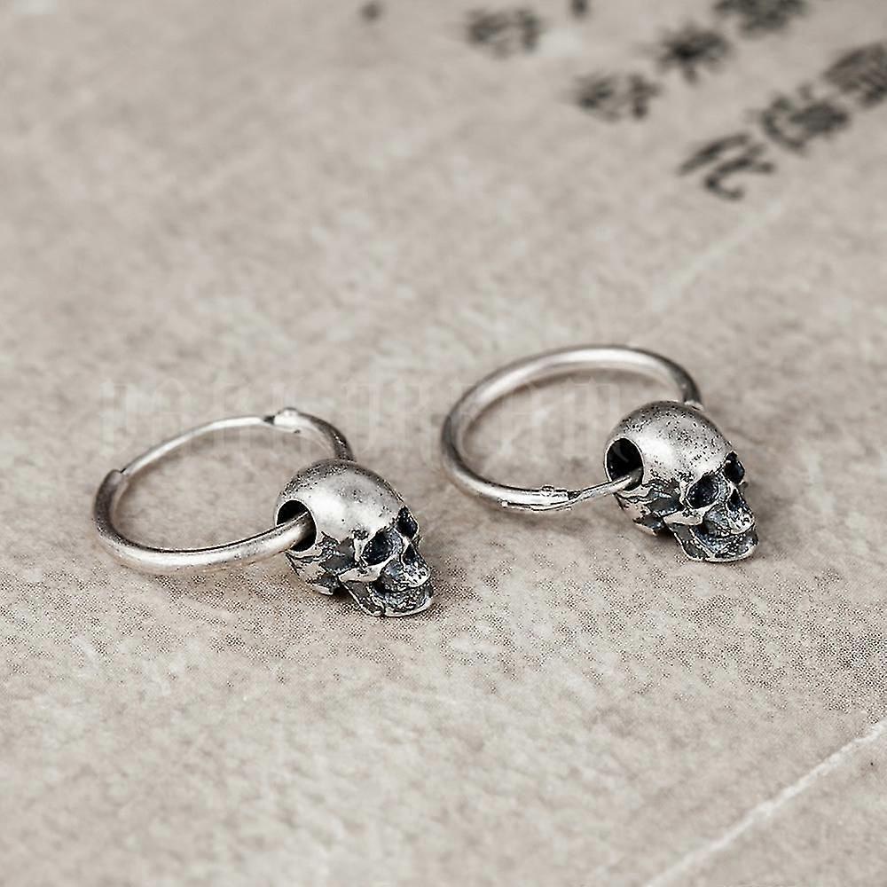 S925 Cool Stainless Steel Earrings Skull Round Hoop Loop Earrings