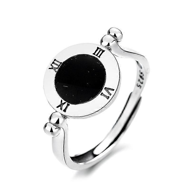 S925 Sterling Silver Roman Numeral Disc Ring, Roman Numeral Adjustable Ring Vintage
