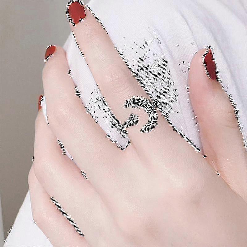 S925 Sterling Silver Crescent Moon And Star Ring Synthetic Opal Open Ring Adjustable Ring Gift For Women