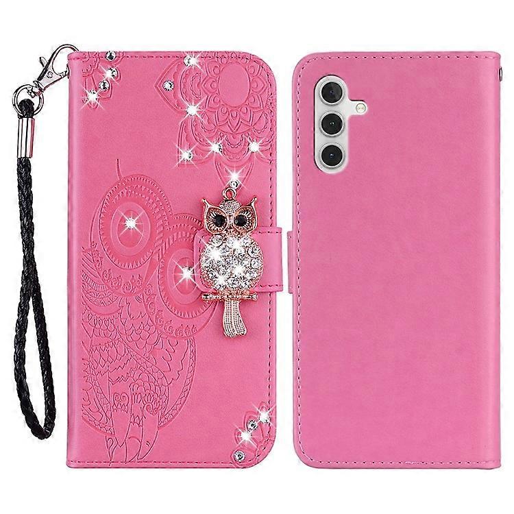 Compatible For Samsung Galaxy A26 5G Wallet Case Owl Flower Imprinted Rhinestone Leather Cover