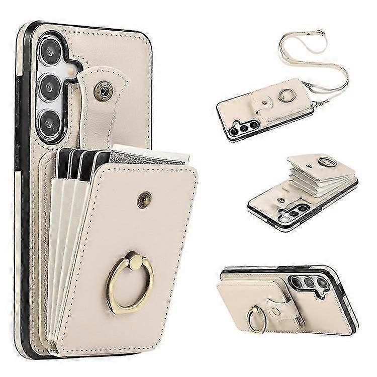 Compatible For Samsung Galaxy A56 5G Case Card Holder Ring Kickstand TPU + PU Leather Phone Cover with Long Strap