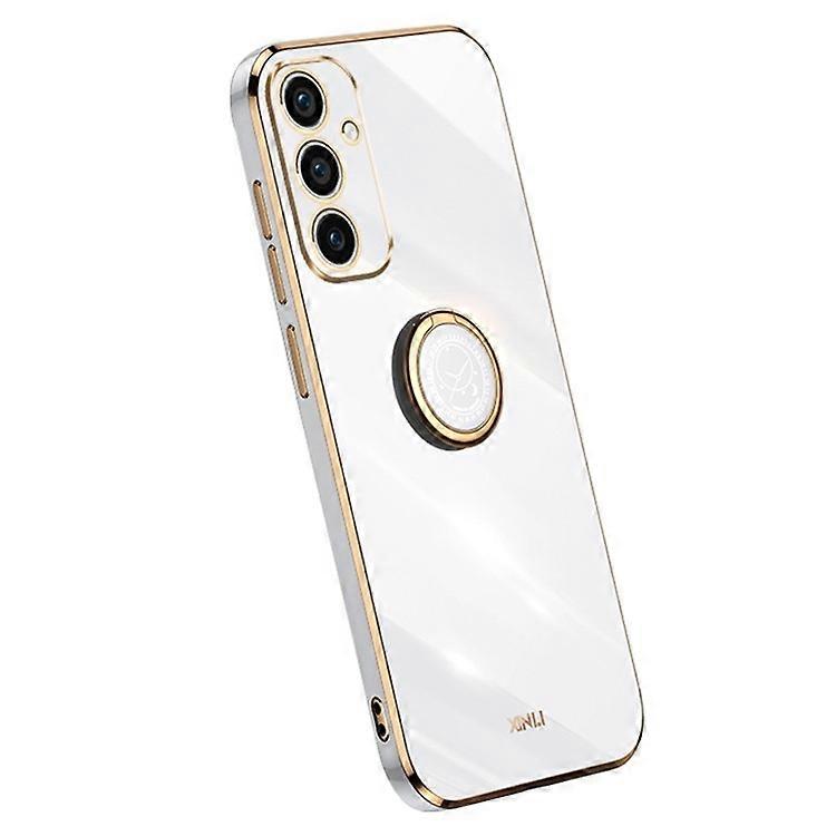 XINLI For Samsung Galaxy A56 5G Case Ring Kickstand Electroplating TPU Phone Cover - White
