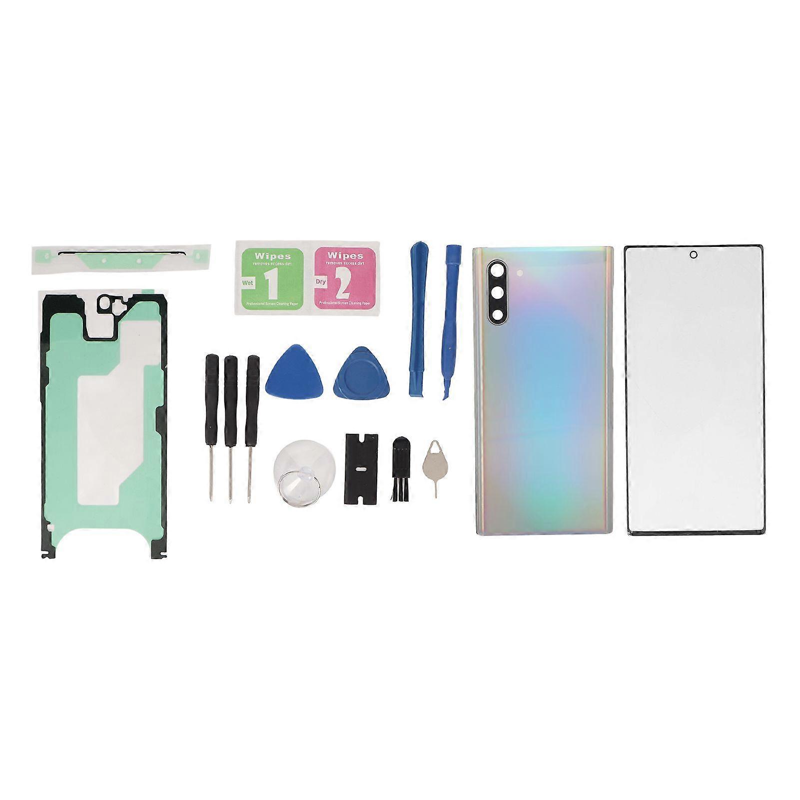 Feature:1. Repair Broken and Damaged Phone: Professional and technical personnel shall test one by one before delivery. This replacement rear glass cover and front outer screen glass cover will repair your broken, damaged and scratched mobile phone. Restore the device to the new device. It's very cost effective to change it yourself.2. Easy to Install: The camera lens and waterproof adhesive have been pre installed on the rear glass cover. There are no operating instructions, but there are many guides on the network. Follow the video step by step. You can easily install it. Enjoy DIY.3. Perfect Fit and Replacement: Back glass cover and front screen glass kit fits perfectly and replace the damaged rear glass cover. Professional technical installation required, or you can find multiple installation videos for reference.4. Replace Glass Screen: Front screen glass for Samsung Galaxy Note 10 is perfect replacement of broken or scratched glass screen, excluding LED screen and digitizer.5. Include Complete Kit: It comes with a full set of professional repair kits. It is much easier for you to remove the broken rear glass door and front outer screen glass cover.Specification:Item Type: Back Glass Cover Front Screen Glass for Samsung Galaxy Note 10Product Material: GlassWeight: Approx. 114g / 4.0ozApplication: Suitable for Samsung Galaxy Note 10.Package List:1 x Rear Cover1 x Outer Screen Glass Cover2 x Rear Cover Adhesive1 x Plastic Blade2 x Press Plate2 x Driver3 x Screwdriver1 x Sucker1 x Cleaning Paper1 x Clamp Pin1 x Brush