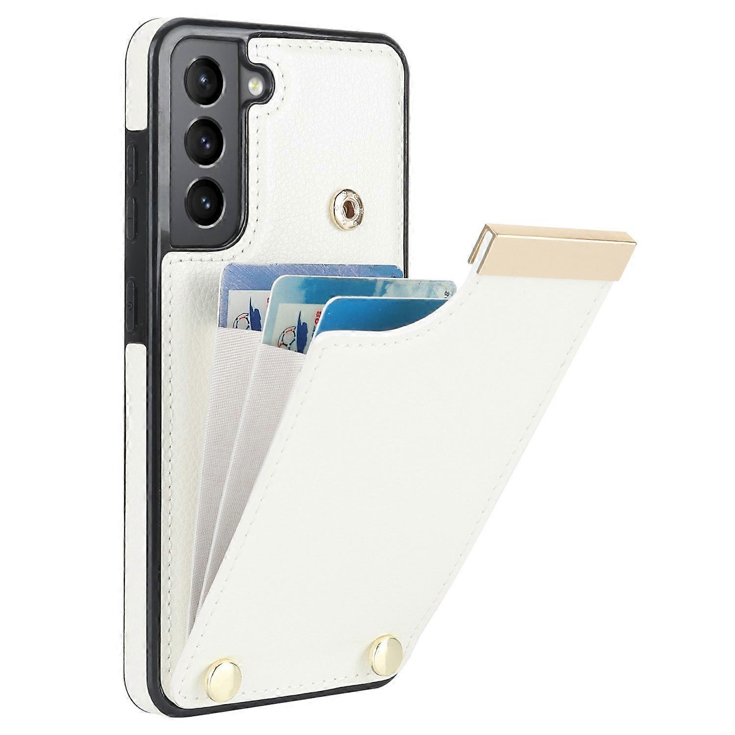 For Samsung Galaxy S21 FE 5G Cell Phone Case Drop-proof Card Holder Cover with Hardware Decor - Whit
