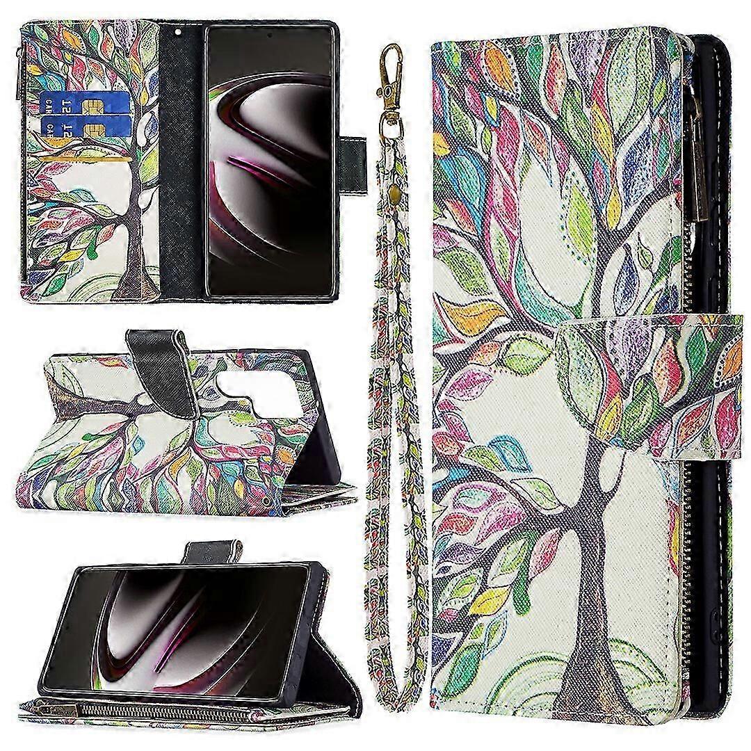 Compatible with Samsung Galaxy S22 Ultra 5G Case Premium PU Leather Zipper Flip Wallet with Card Slot Wrist Strap Cover