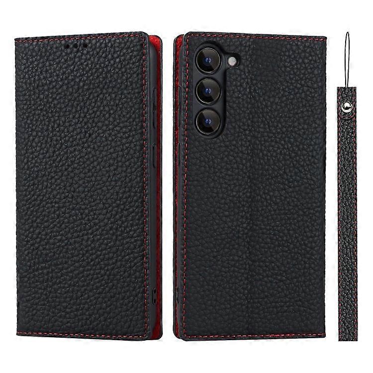 Genuine Leather+TPU Flip Cover Compatible For Samsung Galaxy S23 Plus, Litchi Texture Wallet Stand Phone Protective Case Shell wit