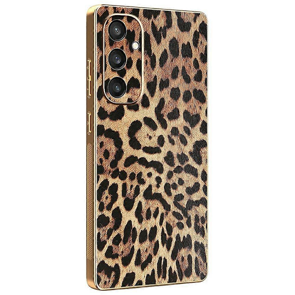 For Samsung Galaxy S25 Case Leopard Print PU Leather Coated PC + TPU Electroplating Phone Cover